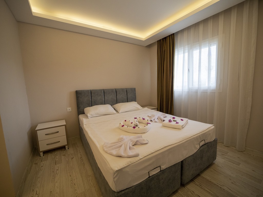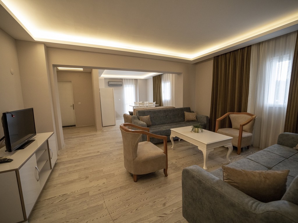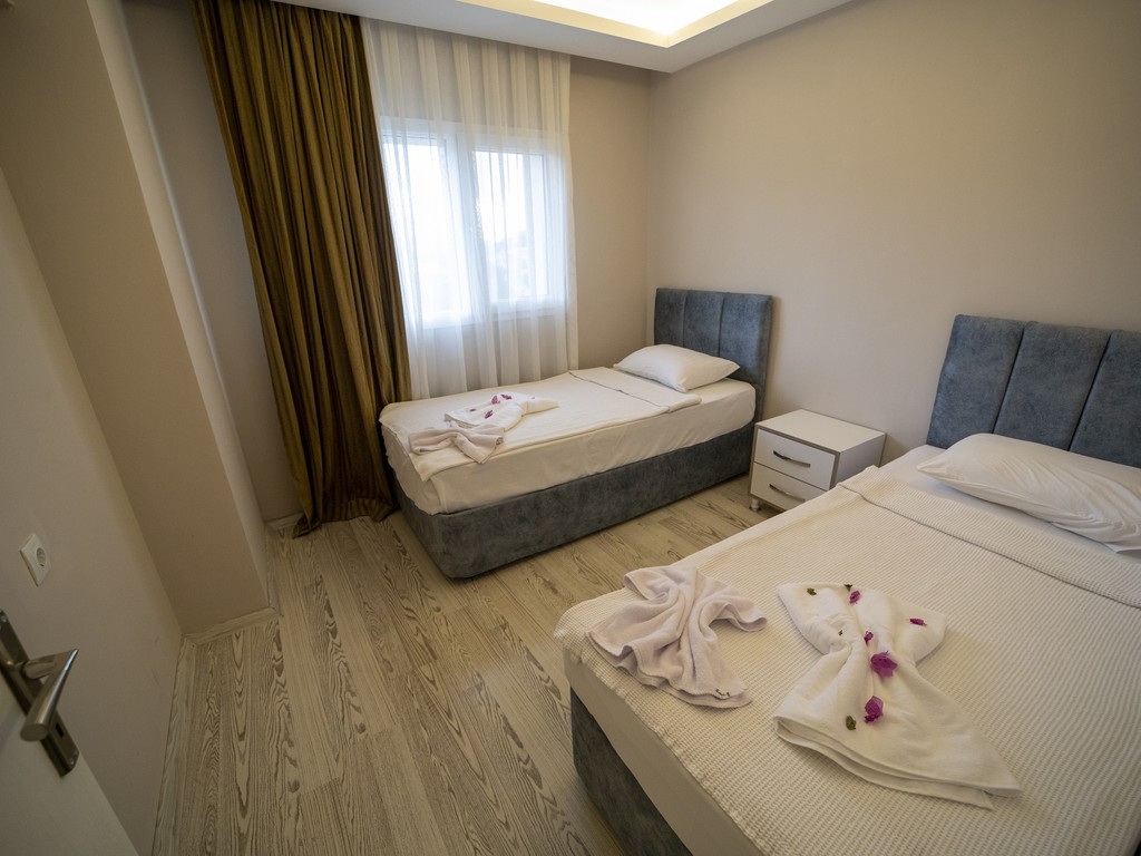 Penthouse Crown 2+1 odamız; 100 M² 2 Yatak odası,1 oturma odası, 2 banyo ve mutfak bulunmaktadır Penthouse Crown 2+1 odamız; 4 kişilik ayrıca misafirlerimizin talepleri doğrultusunda extra ücret ile 2 ek yatak kullanımına uygundur. Maksimum kapasite 6 kişiliktir. 4 Yetişkin + 2 çocuk ya da 6 Yetişkine uygun olup bebekler için bebek yatağı ücretsiz olarak misafirlerimizin talepleri doğrultusunda hizmet vermekteyiz. 0-3 yaş ücretsiz, 3-6 yaş 1 kişi ücretinin %25i kadarını, 6-12 yaş 1 kişi ücretinin %50 kadarını ek ücret olarak fiyatlara uygulanmaktadır. *Deniz Manzarası *Split Klima *2 adet Giyinme dolabı *55 Lcd ekran TV *Kablosuz internet erişimi *Buzdolabı *Banyo Buklet Seti *Duş – Banyo *Uydu yayını *Laminant zemin *Dairelerimize ulaşım engelli misafirler için uygundur.