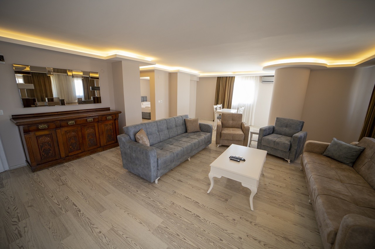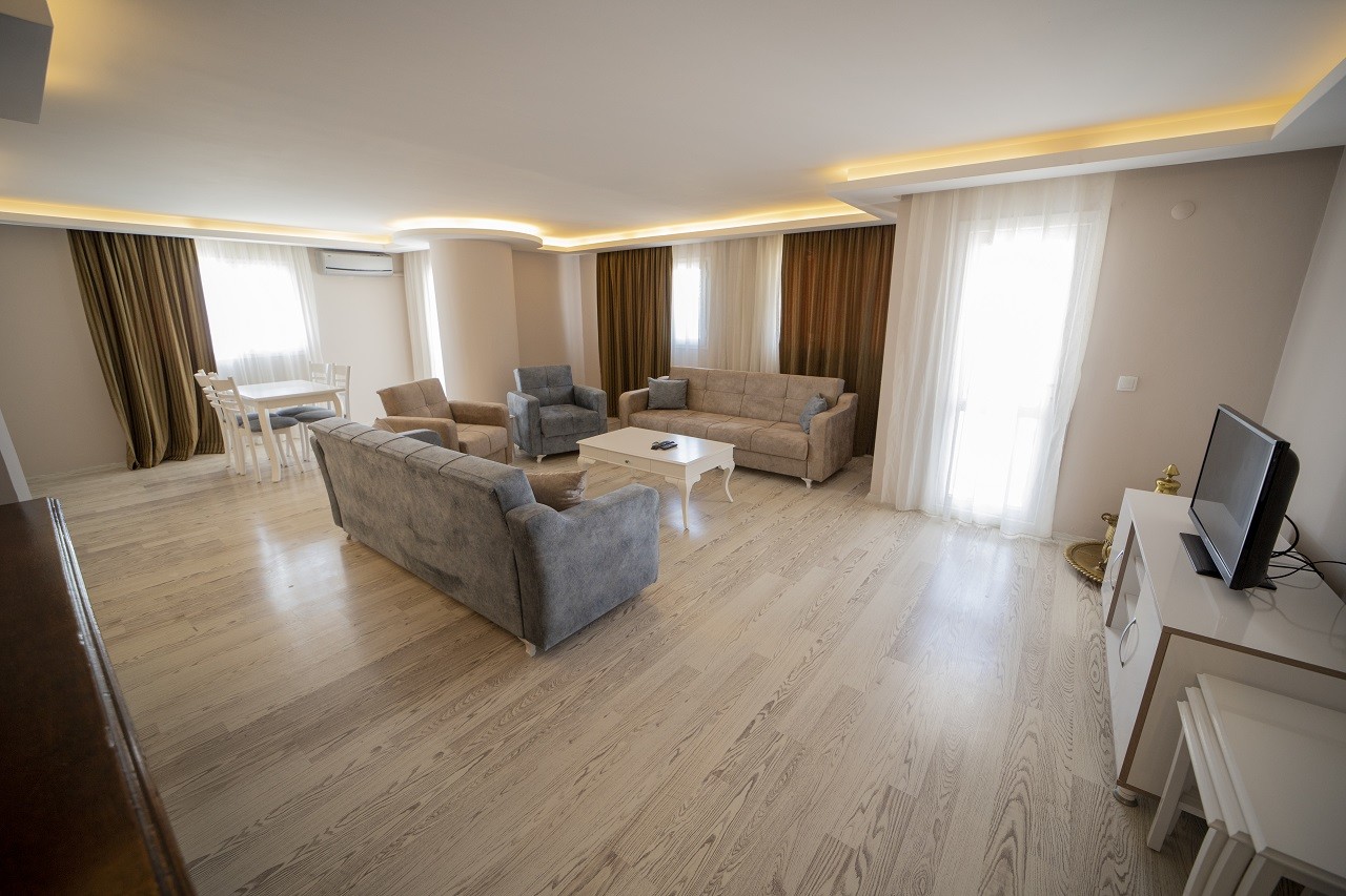 Penthouse Sunset 2+1 odamız; 100 M² 2 Yatak odası,1 oturma odası, 2 banyo ve mutfak bulunmaktadır Penthouse Sunset 2+1 odamız; 4 kişilik ayrıca misafirlerimizin talepleri doğrultusunda extra ücret ile 2 ek yatak kullanımına uygundur. Maksimum kapasite 6 kişiliktir. 4 Yetişkin + 2 çocuk ya da 6 Yetişkine uygun olup bebekler için bebek yatağı ücretsiz olarak misafirlerimizin talepleri doğrultusunda hizmet vermekteyiz. 0-3 yaş ücretsiz, 3-6 yaş 1 kişi ücretinin %25i kadarını, 6-12 yaş 1 kişi ücretinin %50 kadarını ek ücret olarak fiyatlara uygulanmaktadır. *Deniz Manzarası *Split Klima *2 adet Giyinme dolabı *55 Lcd ekran TV *Kablosuz internet erişimi *Buzdolabı *Banyo Buklet Seti *Duş – Banyo *Uydu yayını *Laminant zemin *Dairelerimize ulaşım engelli misafirler için uygundur.